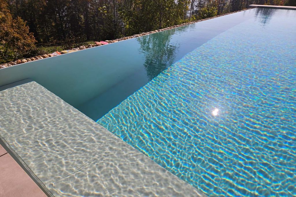Fließendes, schier endlos erscheinendes Wasser. Das sanft überlaufende Wasser an bis zu drei Seiten des Pools schließt den Kreislauf des schönen Designs. Kein sichtbarer Beckenrand, sondern Freiheit pur.